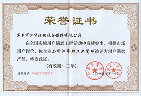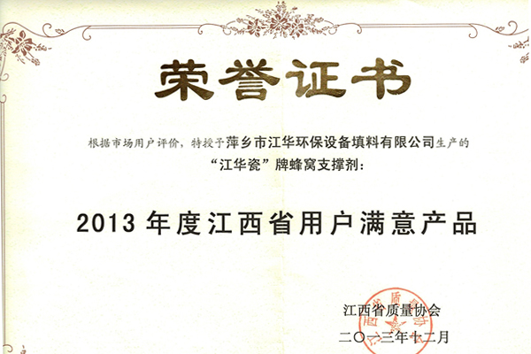 2013年用戶滿意產(chǎn)品證書(蜂窩陶瓷)