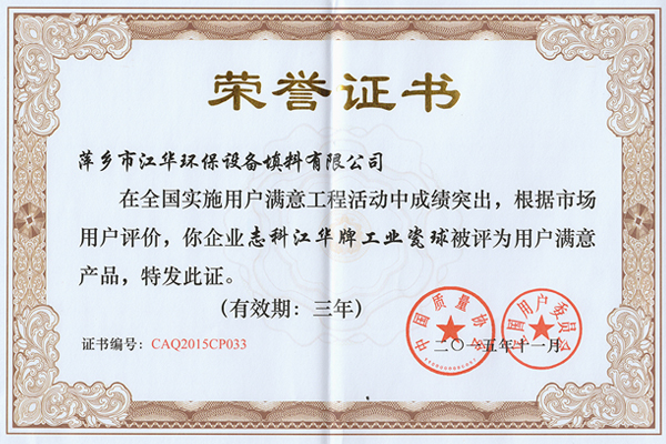 2011年用戶滿意產(chǎn)品(多維開孔瓷球、化工填料)