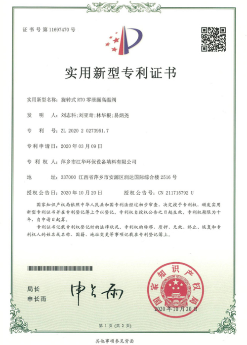 采用耐高溫密封結(jié)構(gòu)的RTO旋轉(zhuǎn)閥