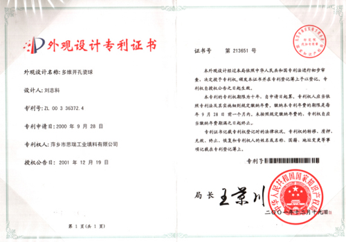 槽式瓷柱填料專利證書生產(chǎn)基地:江西省萍鄉(xiāng)市湘東區(qū)產(chǎn)業(yè)園B區(qū)1-188號(hào)