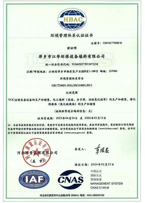 環(huán)境管理體系認(rèn)證證書