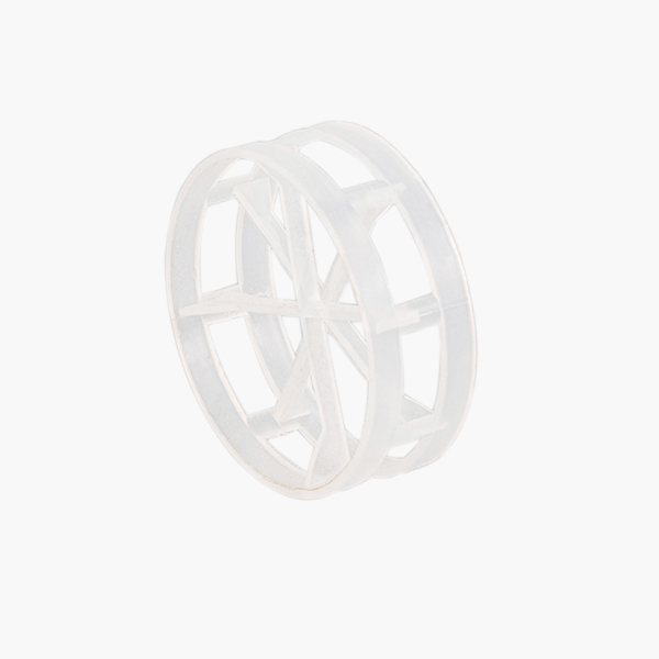 塑料扁環(huán)填料是一種在拉西環(huán)的基礎上,結合鮑爾環(huán)的優(yōu)點改進而成的一種新型塑料填料產品,其高徑比為0.2-0.4,取消了階梯環(huán)的翻邊,采用三條Y形筋片提高填料強度,在亂堆時能有序排列,流道結構合理,壓降低,在處理能力和傳質性能上均有所改善。